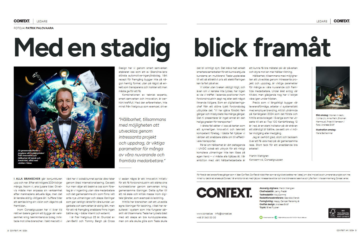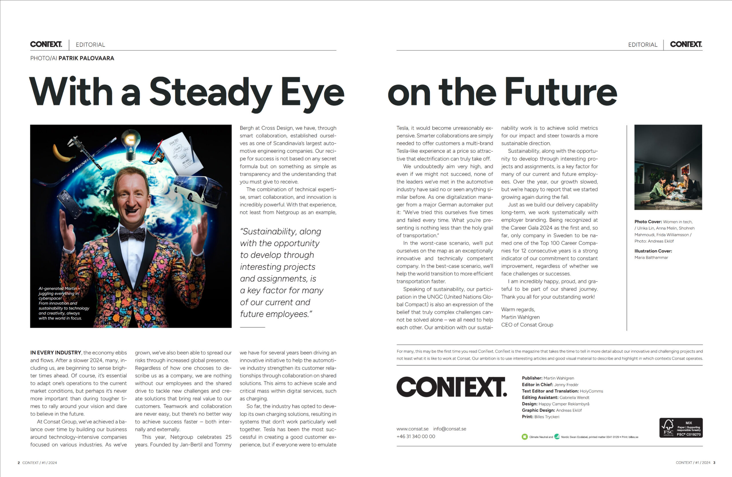 Vår framgång bygger på våra medarbetares passion och drivkraft – visionärer och doers som inte bara drömmer om framtiden, utan också förverkligar den. I varje nummer av ConText får du en inblick i hur vi, tillsammans med kunder och partners, omvandlar idéer till innovation genom samarbete, engagemang och expertis.